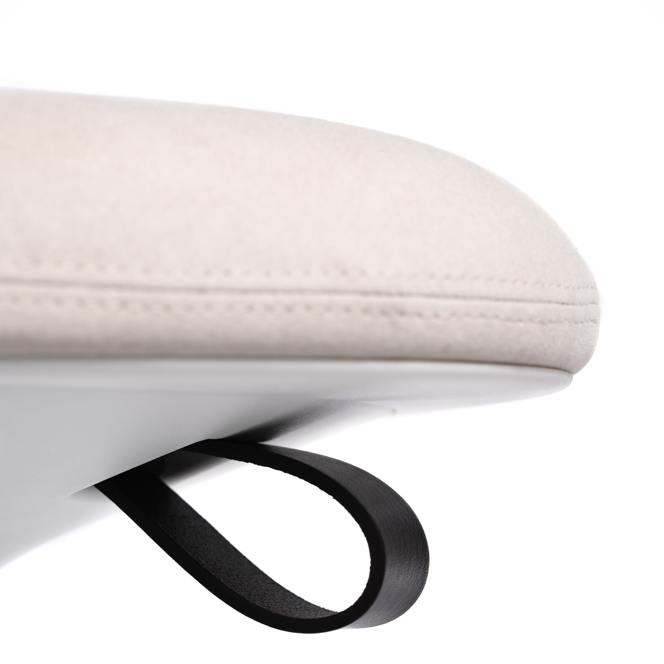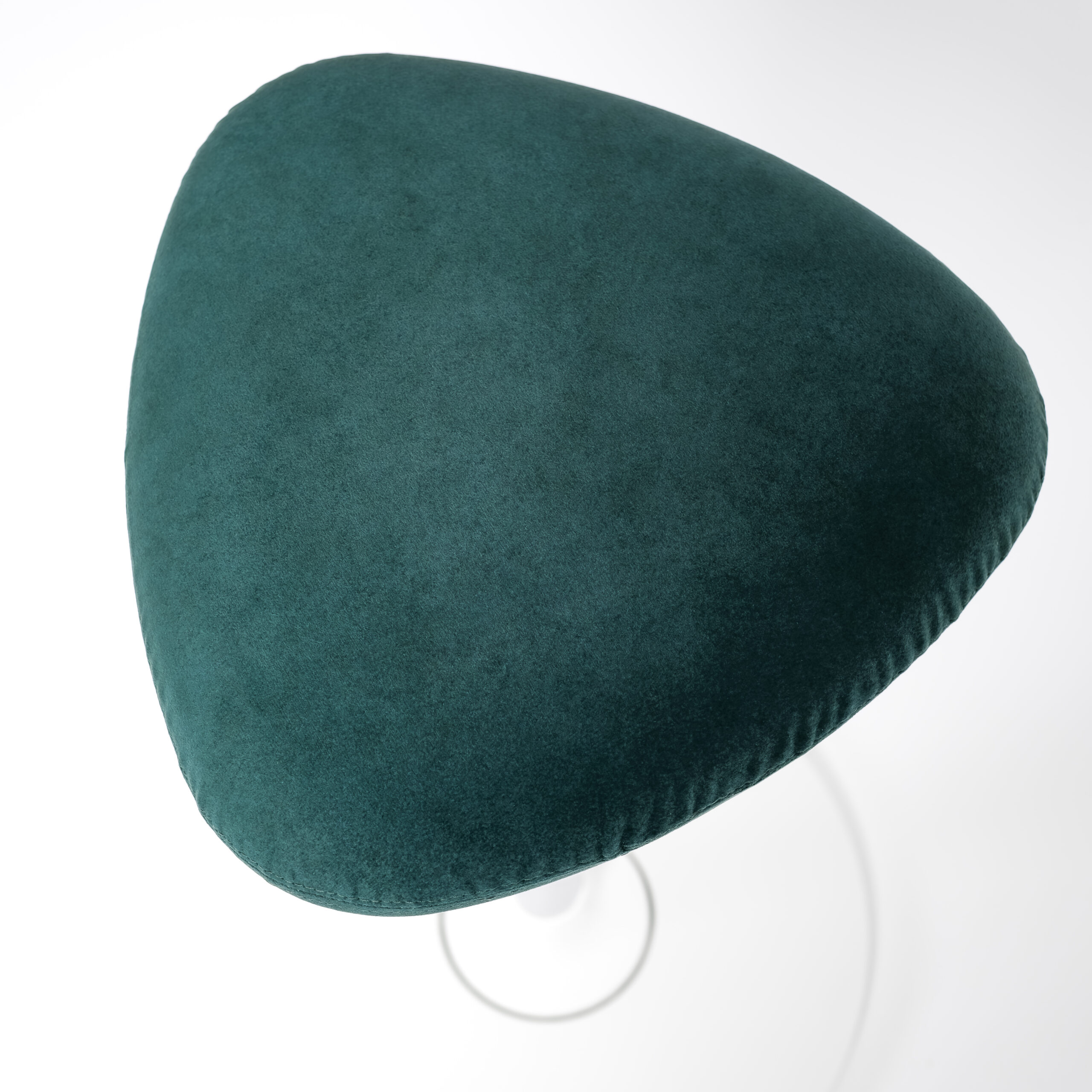 Kolmionmuotoinen pehmustettu istuin mukautuu kehoon ja tukee lantion luonnollista liikettä. Jalustan keinuva rakenne aktivoi keskivartaloa ja lisää tasapainoa sekä ryhtiä – samalla kun valkoinen runko ja laadukas aquaclean®-verhoilu tekevät siitä visuaalisesti hillityn mutta huomiota herättävän.